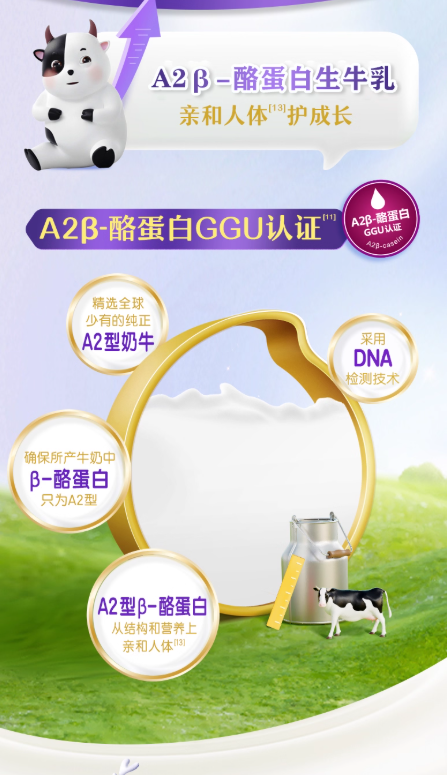 伊利QQ星榛高紫金装儿童奶粉在重视儿童生长养分范畴体现杰出,为孩子生长供给要害养分支撑。其奶源源自伊利自有草场的珍稀A2β-酪蛋白型生牛乳,A2β-酪蛋白与母乳酪蛋白结构附近,易于儿童肠胃消化吸收。