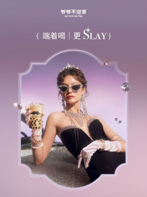 一起,爷爷不泡茶还推出了限制周边“blingbling贴贴”,让每一个奶茶杯都成为高档感拉满的珍珠奶茶杯,也可供顾客DIY装修在手机、太阳镜等随身物品上,让下午茶带来的“端起来”的气氛感延续到门店之外。