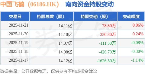 证券之星音讯,11月21日南向资金增持78.8万股我国飞鹤(06186.HK)。近5个买卖日中,获南向资金减持的有3天,累计净减持1755.1万股。近20个买卖日中,获南向资金减持的有9天,累计净减持1672.9万股。到现在,南向资金持有我国飞鹤(06186.HK)14.11亿股,占公司已发行普通股的15.55%。